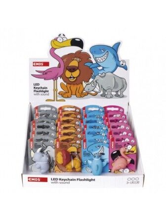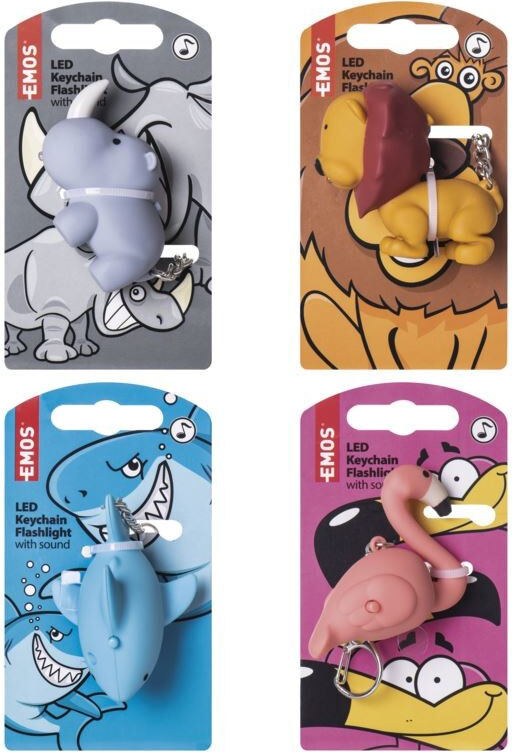 Dětská přívěsková svítilna ve tvaru exotického zvířátka značky EMOS udělá radost Vašim ratolestem. Svit zajišťuje integrovaná LED dioda se svítivostí 5 lm. Je napájena 3 ks 1,5 V LR1130 LR54 baterií, které jsou součástí balení. Na svítilně je umístěno tlačítko pro zapnutí a vypnutí. Je určena pro použití v interiéru. Vztahuje se na ni záruka 2 roky. Na výběr jsou 4 druhy zvířátek - nosorožec, lev, plaměňák a žralok.