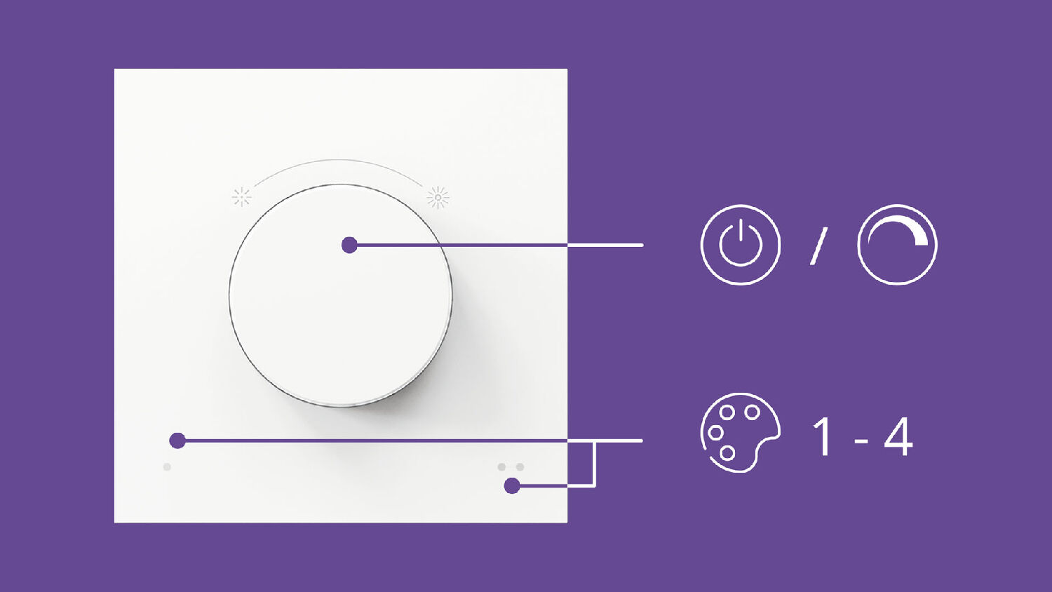 Otočný vypínač z kolekce Philips WiZ pro snadný přístup ke světelným scénám vašeho domácího osvětlení Philips WiZ. Hlavním otočným tlačítkem můžete svítidla vypnout a zapnout a jeho otáčením měníte jas světla. Ovladač obsahuje další dvě dotyková tlačítka, která Vám umožňují nastavit jednu ze 4 oblíbených scén. Vypínač je možné připevnit na zeď pomocí lepicí pásky na zadní straně základny, položit na magnetický povrch (např. na lednici), přišroubovat na zeď, nebo jej můžete využívat jako dálkové ovládání. Veškerá nastavení tlačítek je možné vybrat v mobilní aplikaci WiZ přes ikonku znázorňující nástěnný vypínač (návod naleznete vpravo v záložce Soubory ke stažení). Tento ovladač je všestranným pomocníkem, který vám umožní ovládat svá svítidla WiZ v jedné místnosti do vzdálenosti až 15 metrů a to bez použití telefonu či tabletu. Je zhotoven z kvalitního plastu v bílé barvě. Připojuje se přímo ke světlům WiZ a funguje, i když vám vypadne Wi-Fi. Ovladač obsahuje lithiovou baterii Li-ion 402030, kterou lze dobíjet přes USB-C port na napětí 5V DC. Kabel USB není součástí balení. Doba nabíjení se pohybuje kolem 2,5 hodiny. Ovladač je vybaven LED indikátorem ve tvaru kroužku, který bliká červenou barvou, pokud je potřeba baterii dobít. Minimální životnost baterie činí 50 000 hodin. Vzhledem k nízkému krytí IP20Ochrana proti vniknutí cizích pevných těles s průměrem 12,5 mm a větších a před dotykem prstem; žádná ochrana proti vodě. Nejčastější krytí používané pro zařízení určené pro interiéry. je určen pouze pro vnitřní použití. Rozměry samotného ovladače jsou 8,6 x 8,6 x 2,49 cm. Na ovladač se vztahuje záruka 3 roky.